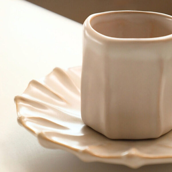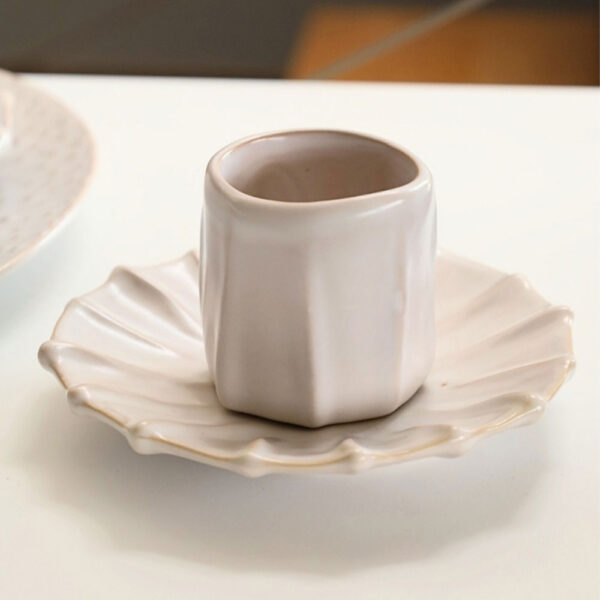 COFFEE CUP AND SAUCER SEA URCHIN MATTE IVORY