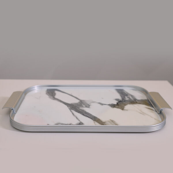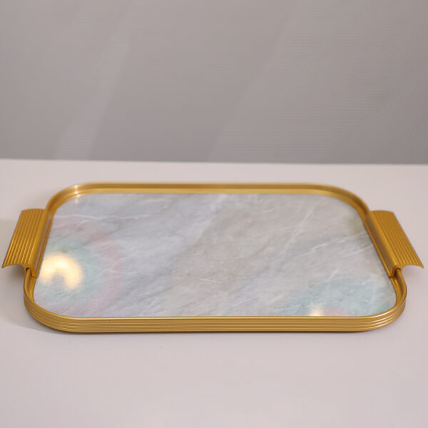 S14 TRAY. LIGHT GREY MARBLE/GOLD