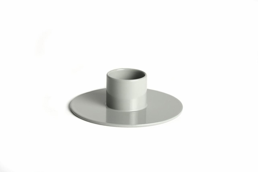 MADE OF POWDERED STEEL MATERIAL: 1,5MM THICK STEEL SIZE: BOTTOM 7CM, INSIDE 2.2CM PLACE THE HOLDER ON A NON-FLAMMABLE SURFACE WHEN IN USE. TO PREVENT POSSIBLE WAX STAINS, BLOW THE CANDLE BEFORE IT HAS BURNED DOWN COMPLETELY COLOR: POP LIGHT GREY