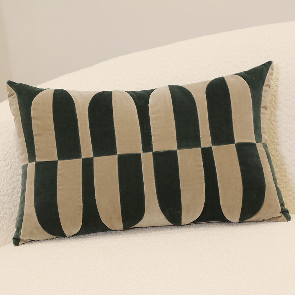 A SOPHISTICATED DECORATIVE PIECE WITH AN ELEGANT DESIGN AND UNIQUE, JOYFUL COLORS THAT BRING LIFE TO ANY ROOM FABRIC: 100% COTTON VELVET FILLING: FILLED WITH SMALL FEATHERS WITH A HIGH CONCENTRATION OF DOWNS CARE: DRY CLEAN ONLY SIZE: 40 X 60 CM