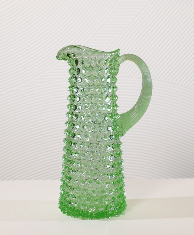 VOLUME 1000ML HEIGHT 28CM DIAMETER 12,3CM TALL, SLENDER AND PROUD. THE EIFFEL VASE IN THE TRADITIONAL BOHEMIAN HOBNAIL PATTERN IS AN ELEGANT PIECE, MOUTHBLOWN AND HANDMADE BY PROFESSIONALS WITH DECADES OF EXPERIENCE. USED FOR WINE, WATER OR FLOWERS- OR JUST AS A DECORATION IN ITSELF- IT IS SURE TO BE A CENTERPIECE IN ANY HOUSEHOLD COLOR: LIGHT GREEN