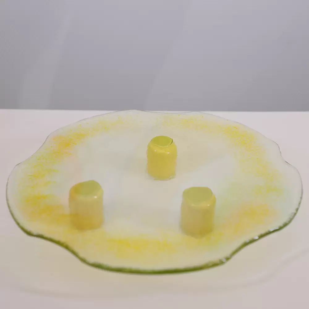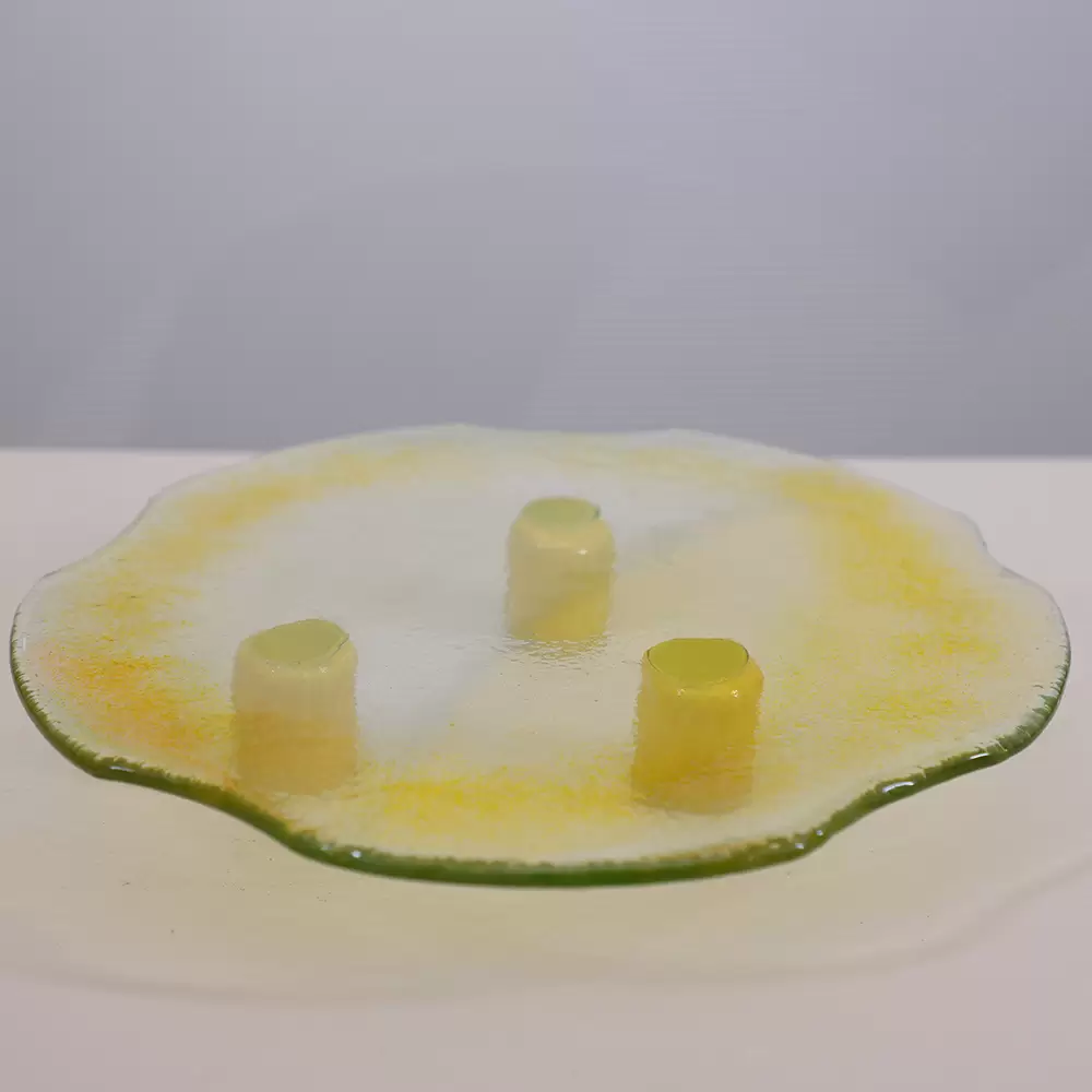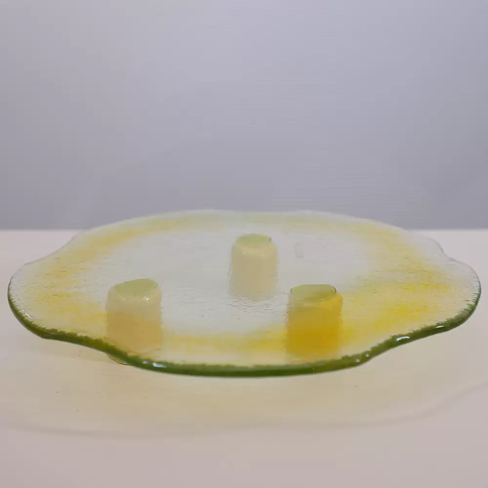 INTRODUCING OUR EXQUISITE SERVEWARE COLLECTION, WHERE GLASS AND CERAMIC COME TOGETHER IN A HARMONIOUS FUSION OF TRADITION AND MODERN CRAFTSMANSHIP. DESIGNED AND HANDCRAFTED BY OUR LOCAL ARTISANS, EACH PIECE REFLECTS A DEEP APPRECIATION FOR ARTISTRY, SKILL AND FUNCTIONALITY. WITH A VARIETY OF SHAPES, COLORS AND USES, THIS COLLECTION TRANSFORMS EVERY DINING EXPERIENCE INTO A VISUAL AND SENSORY DELIGHT. WHETHER FOR EVERYDAY USE OR SPECIAL OCCASIONS, THESE HANDCRAFTED PIECES BRING BEAUTY, AUTHENTICITY AND FUNCTIONALITY TO EVERY TABLE. DIAMETER: 25 CM HEIGHT: 4 CM