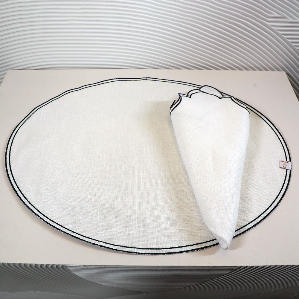 NAPKIN LINEN 48 X 48 cm FROM THE PASSION FOR QUALITY TO THE ATTENTION TO DETAIL: DISCOVER THE PATH THAT LED US TO CREATE UNIQUE TABLE TEXTILES, COMBINING SEMI-ARTISANAL TRADITION AND CUSTOM DESIGN. EACH PRODUCT TELLS THE STORY OF OUR COMMITMENT AND YOUR STYLE. ONE OF OUR SPECIALTIES IS THE USE OF THE COATED LINEN THAT CAN BE CLEANED WITH A SINGLE WIPE WITH A SPONGE OR WASHED IN A WASHING MACHINE AT 30 DEGREES MACHINE WASHABLE AT 30 DEGREES NO BLEACHING HAND WASH HORIZONTAL AND AIR DRYING IS RECOMMENDED