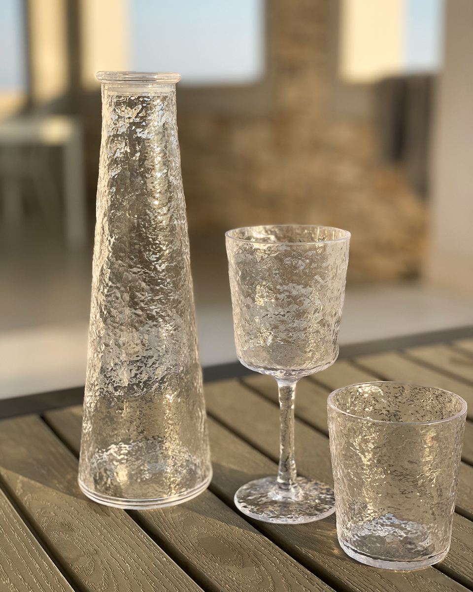 COMPOSITION: METHACRYLATE D: 8.5 CM H: 9 CM Transparent glass with full cream spiral, made of TOP QUALITY methacrylate, a plastic material more transparent than glass, resistant to UV rays and 100% recyclable. Not compatible with sun creams. The material used gives these glasses lightness and practicality, resistant to impacts and suitable for food use. They are ideal for outdoor use for: picnics, barbecues, boat parties, birthdays, anniversaries, garden parties, outdoor lunches or dinners. Our collections are also highly appreciated for the modern and refined aesthetics that characterize them. Dishwasher safe using a neutral detergent, at a maximum temperature of 60 degrees, on the top shelf of the machine. Dry with a soft cloth after washing. Do not use abrasive sponges.