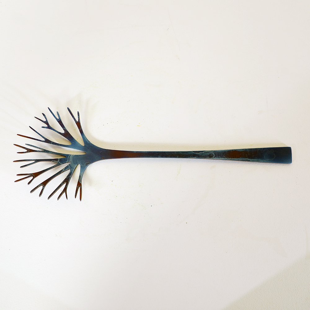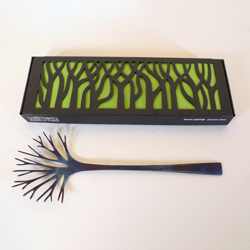 VELVET STEEL IS STAINLESS STEEL IN A NEW, DIFFERENT WAY WITH A SURFACE THAT SHIMMERS IN BLUE NUANCES, CREATES MAGIC SHAPES AND FEEL SMOOTH LIKE VELVET THESE SERVEWARE ARE MANUFACTURED USING RECYCLED AND FERROUS SCRAP. THE ESSENCE OF THE DESIGN PROCESS IS TO PRODUCE LONG-LASTING ITEMS. STAINLESS STEEL/ LENGTH 28CM DISHWASHER SAFE