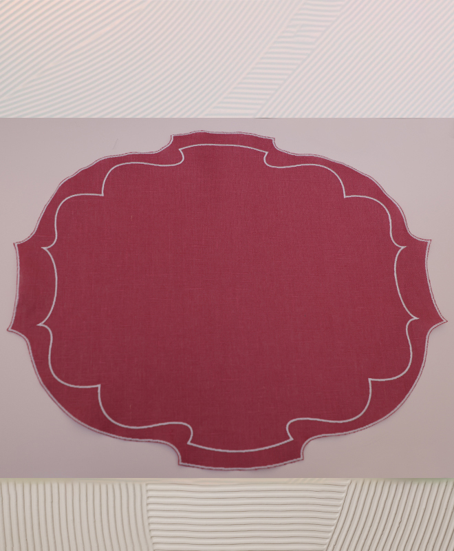 FROM THE PASSION FOR QUALITY TO THE ATTENTION TO DETAIL: DISCOVER THE PATH THAT LED US TO CREATE UNIQUE TABLE TEXTILES, COMBINING SEMI-ARTISANAL TRADITION AND CUSTOM DESIGN. EACH PRODUCT TELLS THE STORY OF OUR COMMITMENT AND YOUR STYLE. ONE OF OUR SPECIALTIES IS THE USE OF THE COATED LINEN THAT CAN BE CLEANED WITH A SINGLE WIPE WITH A SPONGE OR WASHED IN A WASHING MACHINE AT 30 DEGREES MACHINE WASHABLE AT 30 DEGREES NO BLEACHING HAND WASH HORIZONTAL AND AIR DRYING IS RECOMMENDED 51 X 35 CM