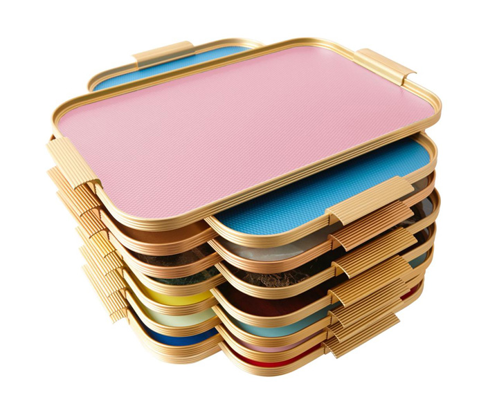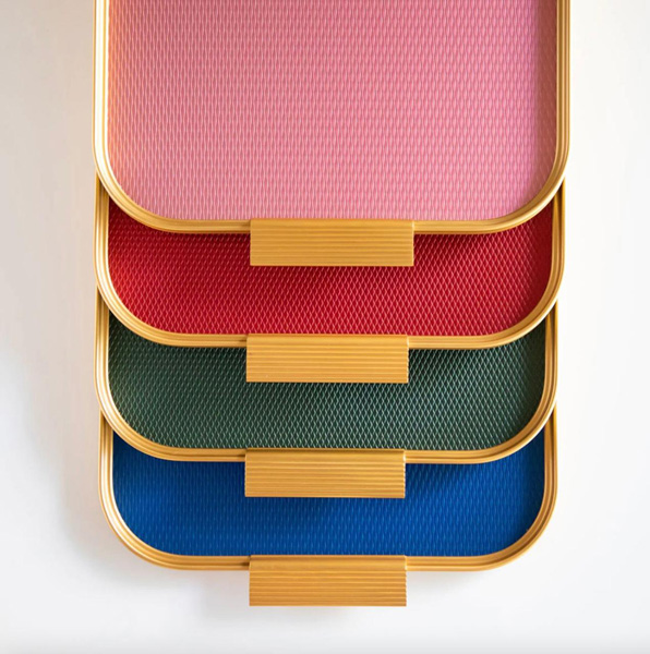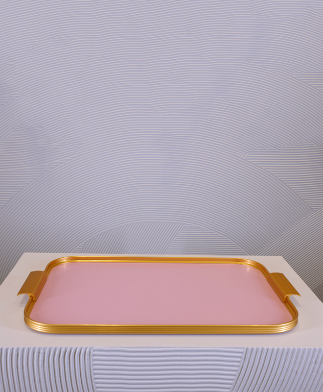 ANODISED ALUMINIUM TRAY, BRUSHED SURFACES, HAND FINISHED SIZE: 350 X 225MM COLOR: PINK/ GOLD