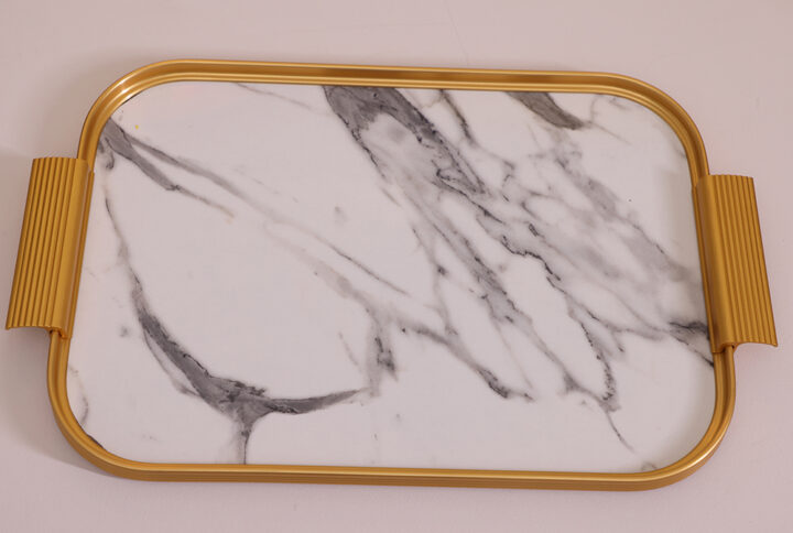 S14 TRAY. LIGHT GREY MARBLE/GOLD