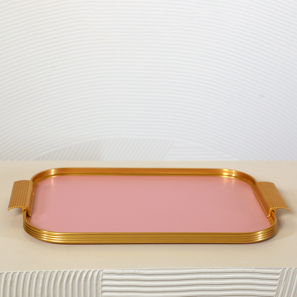 ANODISED ALUMINIUM TRAY, BRUSHED SURFACES, HAND FINISHED 350 X 225MM COLOR: ROSE PINK/ GOLD