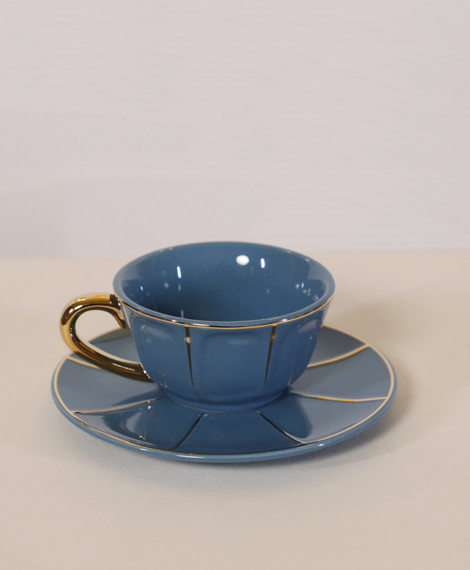 COLORED TEA CUPS GOLD DETAILS-STONEWARE DISHWASHER SAFE, NOT MICROWAVE SAFE PORCELAIN DIAMETER: 10.5 CM HEIGHT: 5.5 CM