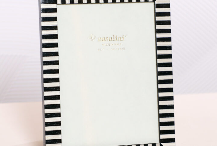 FINISHED WITH 8 COATS OF HIGH GLASS LACQUER, HAND POLISHED BETWEEN EACH COAT. THIS FRAME IS ABLE TO STAND BOTH LANDSCAPE PORTRAIT AND FEATURES A VELVET BACKSTAND. CLEAN WITH A SOFTDRY CLOTH. PHOTO SIZE: 12.7 X 17.8 CM